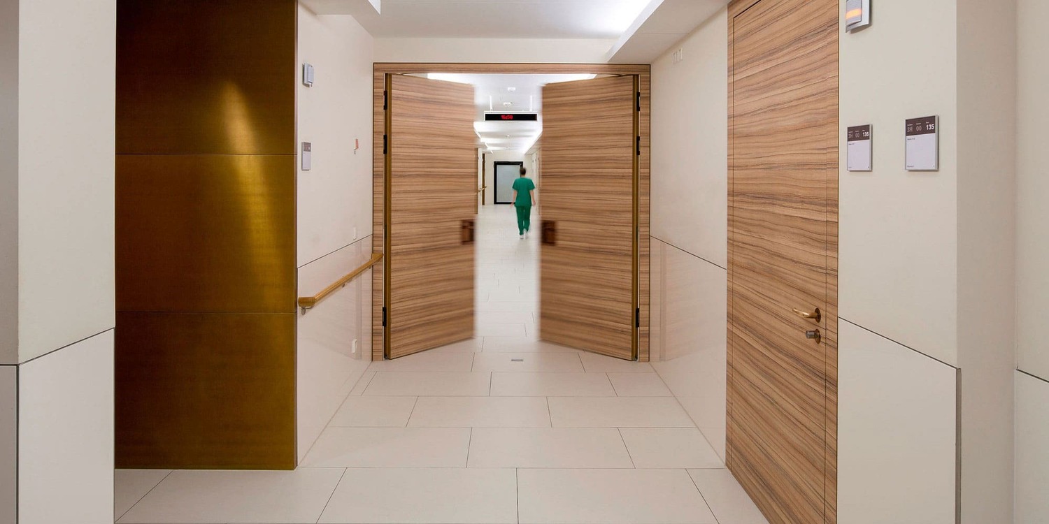 Sicherheit und Effizienz spielen bei der Planung und dem späterem täglich Ablauf in Gesundheitsbauten eine entscheidende Rolle. Daher sind die Ansprüche an die Funktion, Qualität und Logistik in diesen Gebäuden zur Sicherung von effektiven Arbeitsabläufen sehr hoch. Patientenbetten, Rollstühle oder medizinische Geräte müssen jederzeit problemlos zwischen den Räumen und durch die Zimmertüren ohne großen Personaleinsatz bewegt werden. Mit dem Bandsystem VARIANT Care werden aus dem geplanten Zargenmaßen immer reale Durchgangsmaße, da sich die Türen im 90 Grad Winkel vollkommen aus dem Zargendurchgang öffnen lassen. Die Bandsysteme können für ungefälzte Objekttüren mit einer Türblattstärke von 40 mm bis 70 mm eingesetzt werden.
